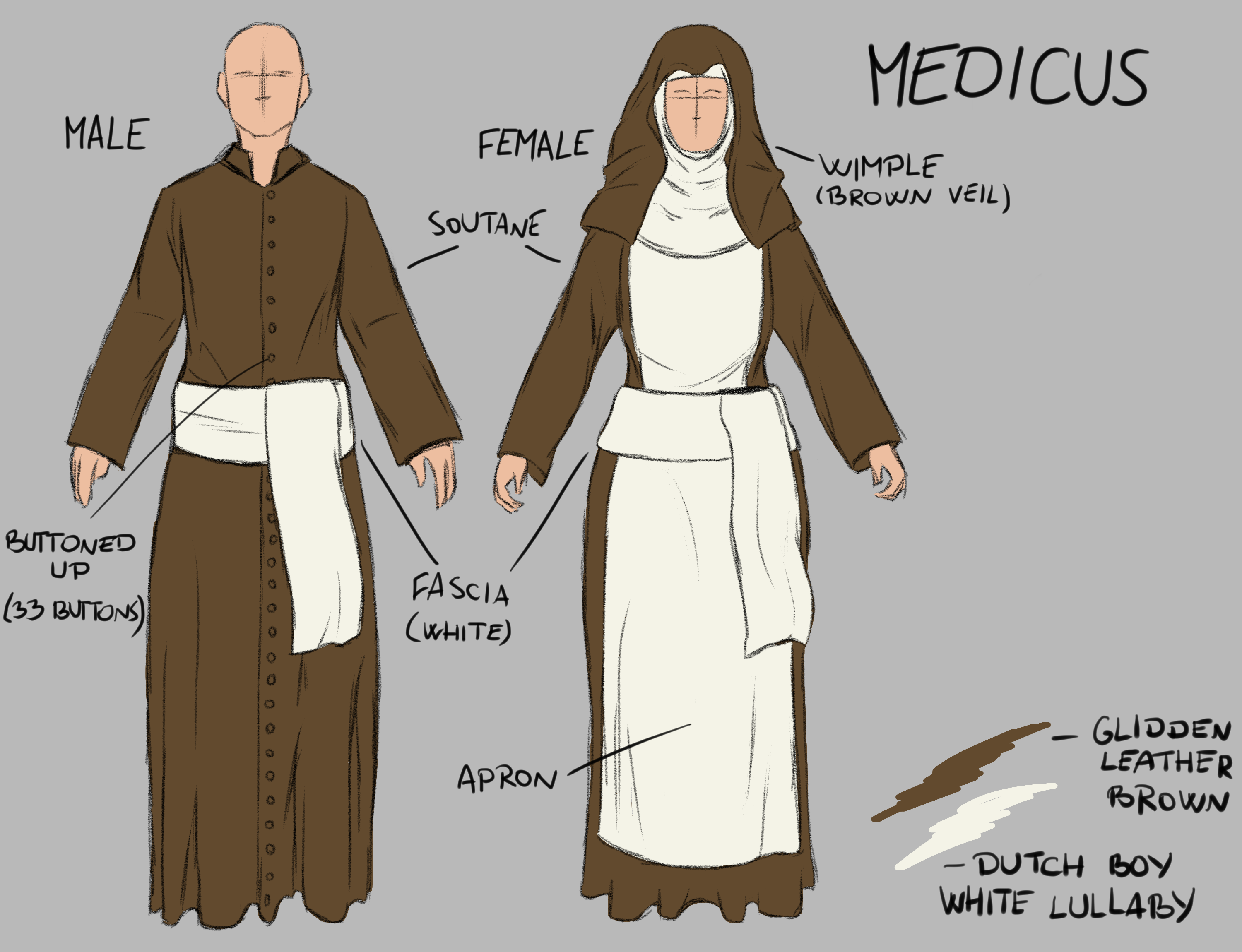 Helpers are the initiates of the Medicinal route. They are members of the clergy in training to become fully-fledged Medici. While Rosewood does rely on older healing methods, most of the best Medici use [Leech Elisabeth Ashyver's texts on medicine](https://medievaldiscordrp.com/libri-medicinae/), compiled from her studies on Arabic, Roman, and Ancient Greek medicine. Helpers are mostly there to tend to the old and sick in the infirmary, while the larger tasks fall onto the Medici.